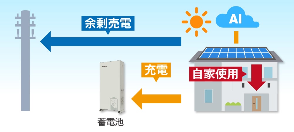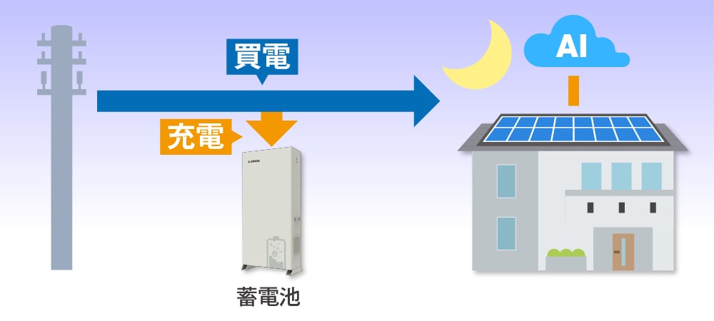 ◯ 太陽光を蓄電池に貯め、夜間に使用 |