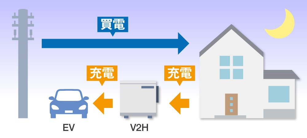 - 電気自動車のバッテリーの充放電をするシステム(充電時は電力会社から購入)