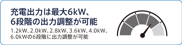 充電出力を5段階設定(6A,10A,16A,20A,25A)でき、電気代アップを抑制するモード