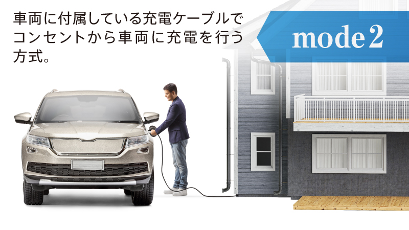 Mode3なら充電器とコネクタが一体型なのでEVに充電コネクタを挿すだけでOK。
