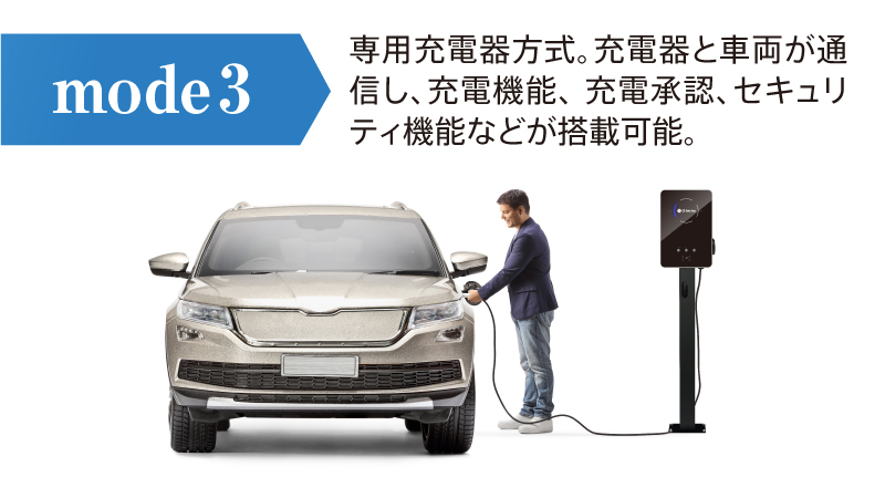 Mode2の最大出力は3.0kW、 Mode3は6kW。EVの電池は年々大容量に進化しており、6kW充電が必需品。