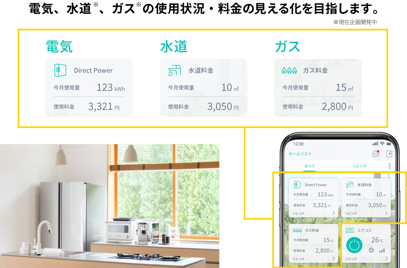 電気、ガス、水道等のエネルギーも見える化でき、脱炭素社会の実現に向けベストマッチなHome OSとして機能し、新たな社会インフラとしての役割も果たします。