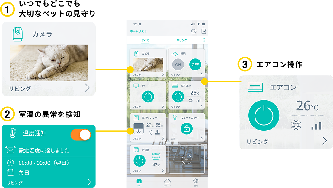 給湯器、床暖房、スマートロックを始め、ユーザーニーズに合わせて