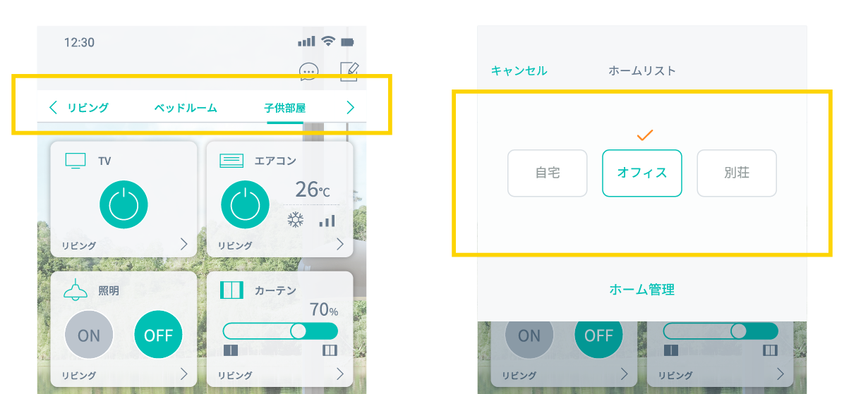 1台のスマホで複数の家や部屋別に機器を管理・操作が可能です。